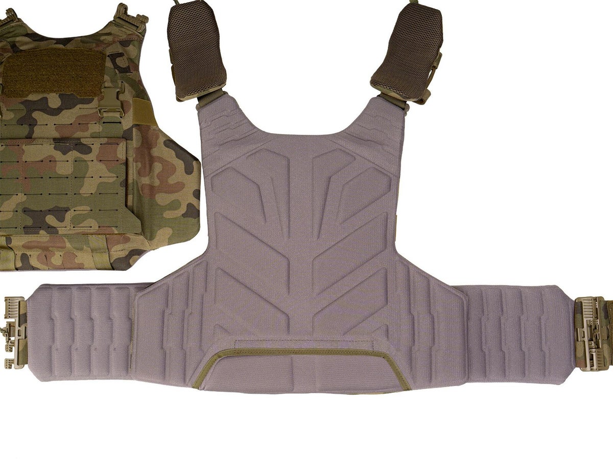 Levytaskut ovat viimeisen päälle suunnitellut: laserleikkausten reunat on pyöristetty, jotta rasitus ei pääse pistemäisesti kuormittumaan yhteen pisteeseen. Lisäksi levytaskut (myös cummerbundissa olevat) on kehon puolelta varustettu 3D-kuvioidulla Gambeson-laminaatilla, jotta ilma pääsee kiertämään. Tämä on erityisen mukavaa tällaisessa liivissä, jossa hengittämättömät suojalevyt peittävät hyvin suuren osan torsosta! Etulevytaskujen sivuilla olevat PALS-kujastot korvaavat hienosti Templarin perinteisen kaksiosaisen cummerbundin, jota tässä liivissä ei ole cummerbundin suojalevytaskujen takia.